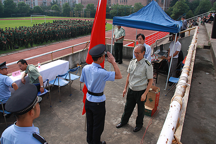 院党委副书记黄杭娟作新生军训动员讲话。她对参加军训的学生表示了赞许并对全体新生提出了希望,希望同学们一要掌握一定的国防知识,二要学会基本的军事技能基础,三要严格遵守纪律,四要加强爱国主义、集体主义意识,五要加强意志品质。夏开堂在发言中对新生提出军事要求,要求思想上有觉悟,做好内务卫生整理等。