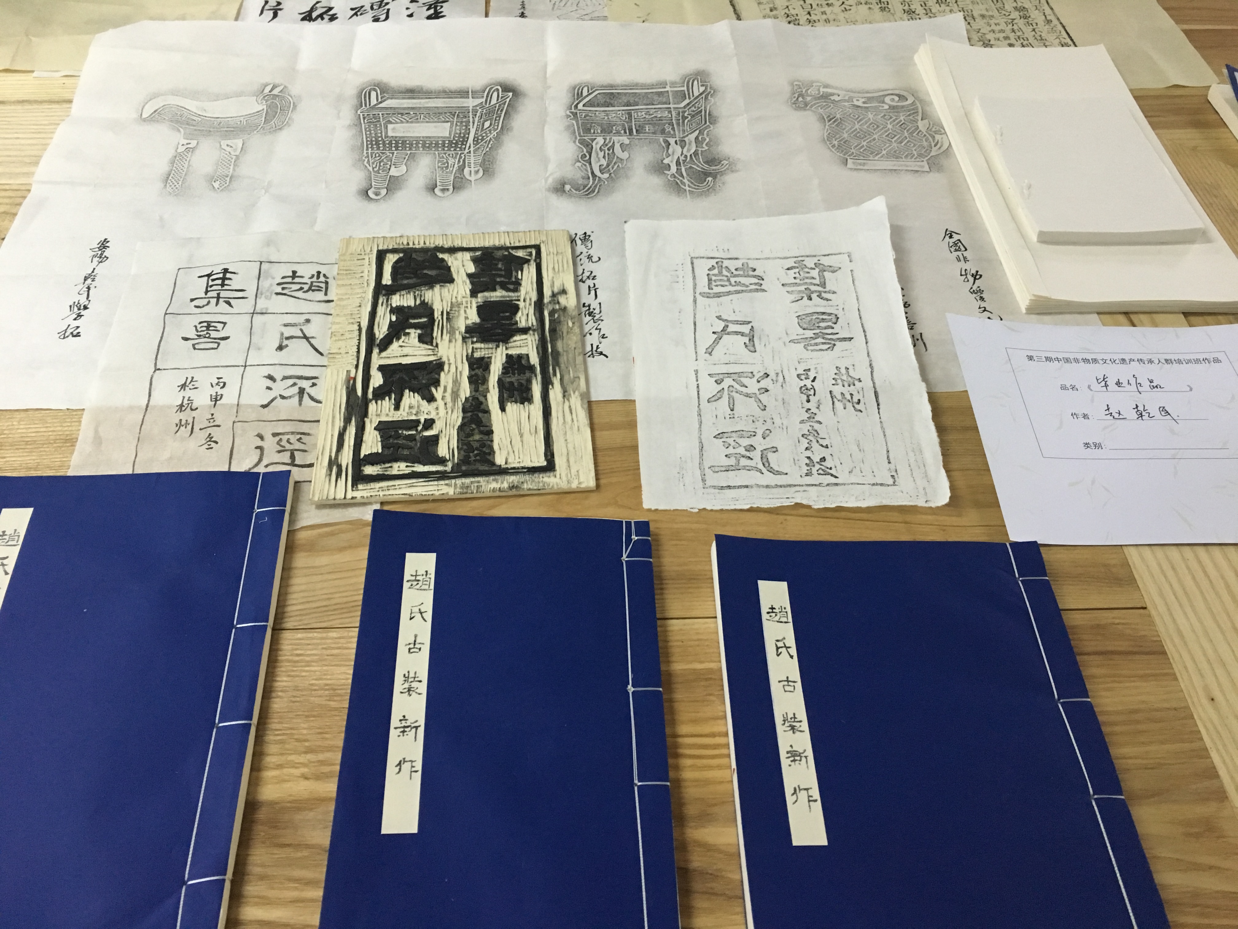 叶涛代表省文化厅非遗处发言。一声“同仁”,拉近了她与这群同样为非遗保护而努力的学员的距离。叶涛说,本期培训班汇集了各个省份的精英,班里卧虎藏龙、高手如林,所以在这次学习成果作品展中不仅看到了字画装裱和古籍修复,也看到了传拓、书画甚至剪纸、陶艺等。叶涛认为,在非遗的几大门类中,书画装裱和古籍修复是一个非常特殊的项目,它在传承中所体现的包容性,对别的门类的集聚性,都是别的项目所不拥有的。传拓、剪纸、陶艺等,都构成了书画装裱、古籍修复项目不可或缺的专业背景。可以说,如果其它的传统手工是为大众生活服务的,那么,书画装裱和古籍修复,其实是用一种手工技艺,来向我们的传统生活、精神生活进行追问。这不是草根文化,而是雅文化,是雅文化当中的精华。非遗传承不易,如何遵循文化部在十三五期间对非遗保护提出的“巩固抢救成果,提升传承水平”要求?叶涛说,这也是非遗传承人群培研计划的初衷:借助院校的力量,来提升传承能力和水平。如何找准定位,如何把握现代审美,如何与市场进行精确对接,这需要在对自身技艺进行要求的同时,思考与现代生活进行联接。她展望多年以后,学员们有的自成一派,有的发展成了我们的民族品牌,有的积累了巨大的社会财富,但他们仍会记得,在2016年,在杭州这个美丽的城市,在浙艺和老师同学的朝夕相处。