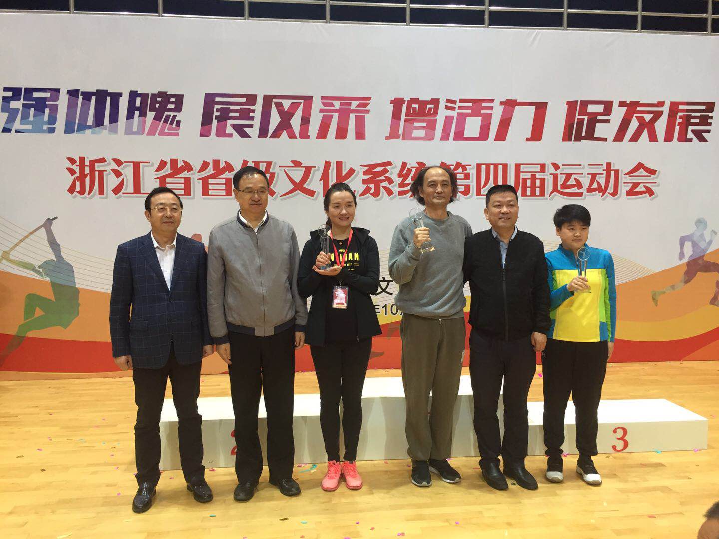 金兴盛宣布运动会开幕,体育馆礼花迸发,全场欢呼。19支代表队用舞蹈、舞龙、交响乐、朗诵等形式展现了文化系统干部职工积极向上的精神面貌。在随后举行的广播操比赛中,浙艺健儿精神饱满、动作整齐,以青春的气息和动人的神采,赢得第二名的好成绩。在激动人心的拔河比赛中,虽未能夺冠,但也成绩不俗,继续收获第二枚银牌。体育馆外的田径场上,同样是热火朝天的竞赛场面。基础教学部青年教师钱慧文获女子跳远第一名、铅球第三名,王婧瑶获女子100米第二名。
