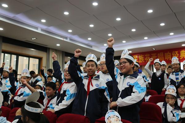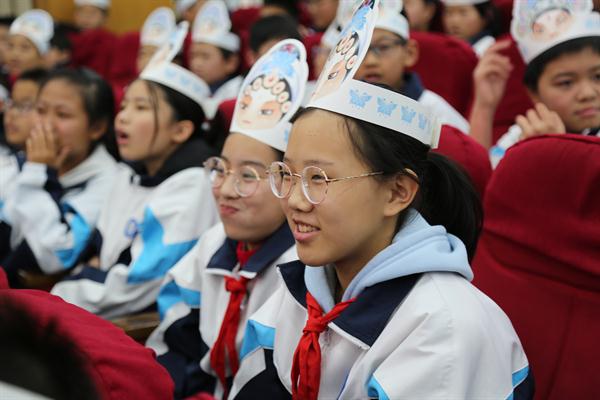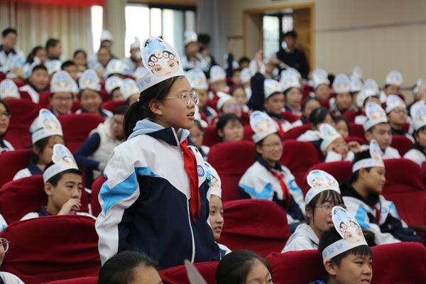 台上是精彩的演出,台下是欢喜雀跃的观众,学起戏曲知识十分积极,有奖竞答的时候同学们都争先恐后举手抢答。主持人问大家想不想上台学一个戏曲动作?想!同学们大喊着脸上洋溢着快乐好奇的笑容。当主持人问到戏曲传递给我们一种怎样的精神时,孩子们纷纷例举《穆桂英挂帅》《花木兰》等曲目来佐证戏曲传承着“爱国”“刚烈”“勇敢”等精神。