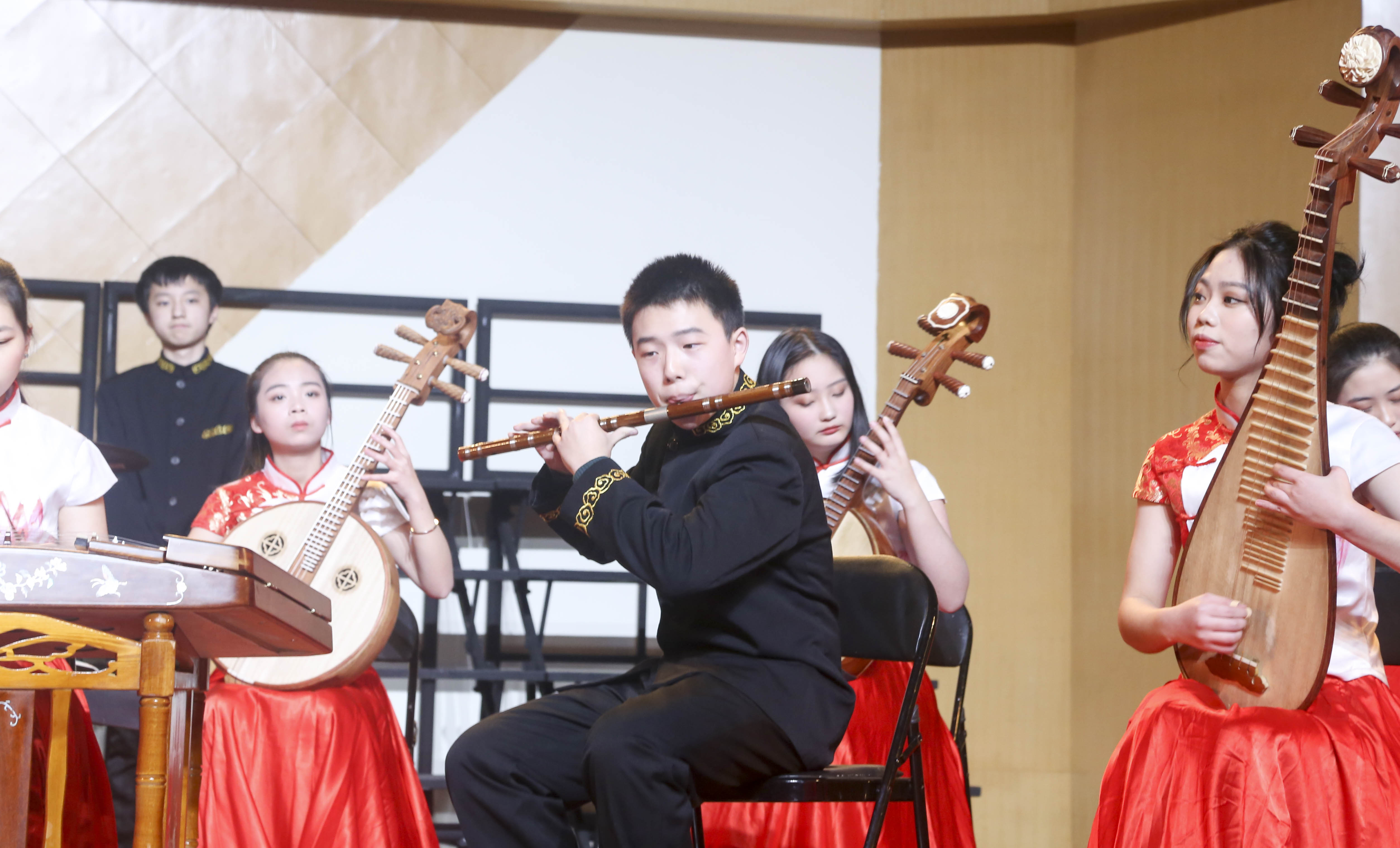 音乐会共上演了8个节目。在新苗丝竹乐队带来的《江南美》欢腾乐声中,音乐会拉开了帷幕。古筝重奏《苍歌引》表演者之一俞嘉睿同学曾在2018年全国职业院校技能大赛弹拨乐器赛项中获中职组一等奖,充满生机的旋律让人感受到演奏者对生命的热爱之情。琵琶独奏《霸王卸甲》充满了悲壮苍劲的独特情感。钢琴独奏《离别》是浪漫主义晚期大师李斯特所作的一首名曲,表演者的演奏水准也是可圈可点。古筝独奏《秦土情》通过不同的演奏技法展现了乐曲的情感变化,跌宕起伏、扣人心弦。小提琴独奏《圣桑 b小调第三号小提琴协奏曲》以优美的旋律深深吸引了观众的听觉神经。二胡独奏《雪山魂塑》展现出热烈的民族音乐之风。音乐会在充满激情的电子管风琴独奏《TiKi TiKiTa》的乐声中画上了圆满句号。