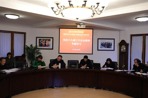 党委班子成员和中层干部代表在交流发言时表示,学习十九届三中全会公报,深受鼓舞,倍感振奋,体会到深化改革与每一个人息息相关。大家要把思想和行动统一到党中央决策部署上来,紧密联系学校实际,坚持问题导向,深入思考与学校办学目标不适应不和谐的问题,深化教育教学、人才培养、科研创作、党建思政、社会服务、行政管理、后勤服务等各项改革。增强学校办学发展活力,围绕文化浙江建设和高校强省战略,抓重点、补短板、强弱项、抗风险,不断构建系统完备、科学规范、运行高效的机构体系,做改革的促进派和践行者,共同推进学校改革建设进一步发展。