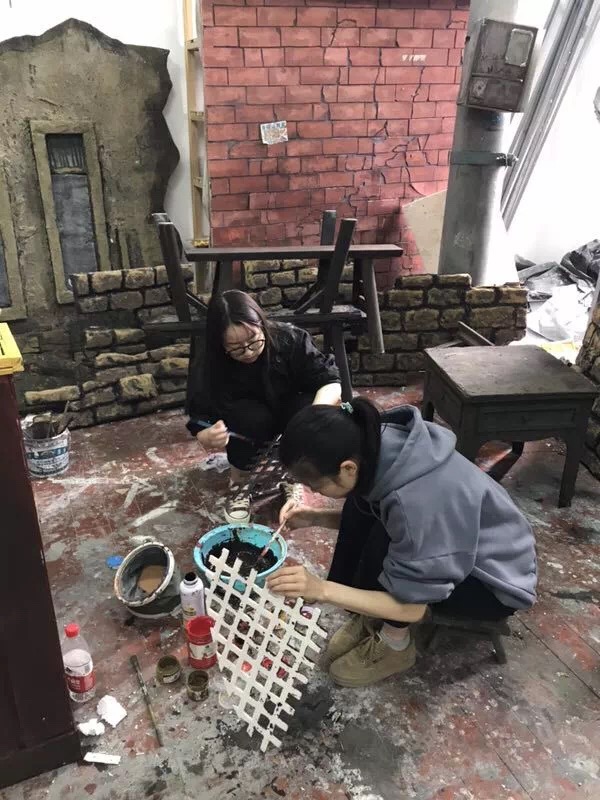 制景阶段,同学们大部分的课外时间都在剧场工作室度过,导演提出修改意见尽量在没进场前先处理。