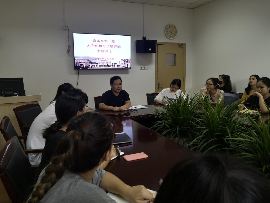 9月5日晚,新学期伊始,音乐系学生党支部在系党员之家会议室举行入党积极分子集体学习暨主题交流讨论。围绕“不忘初心、牢记使命,以四讲四有做合格党员为标准,诠释新时代入党积极分子入党动机”为主题举行集体学习交流。入党积极分子培养班班主任、首批入党积极分子培养班学员、其他入党积极分子代表、学生党务助理等共同参与。