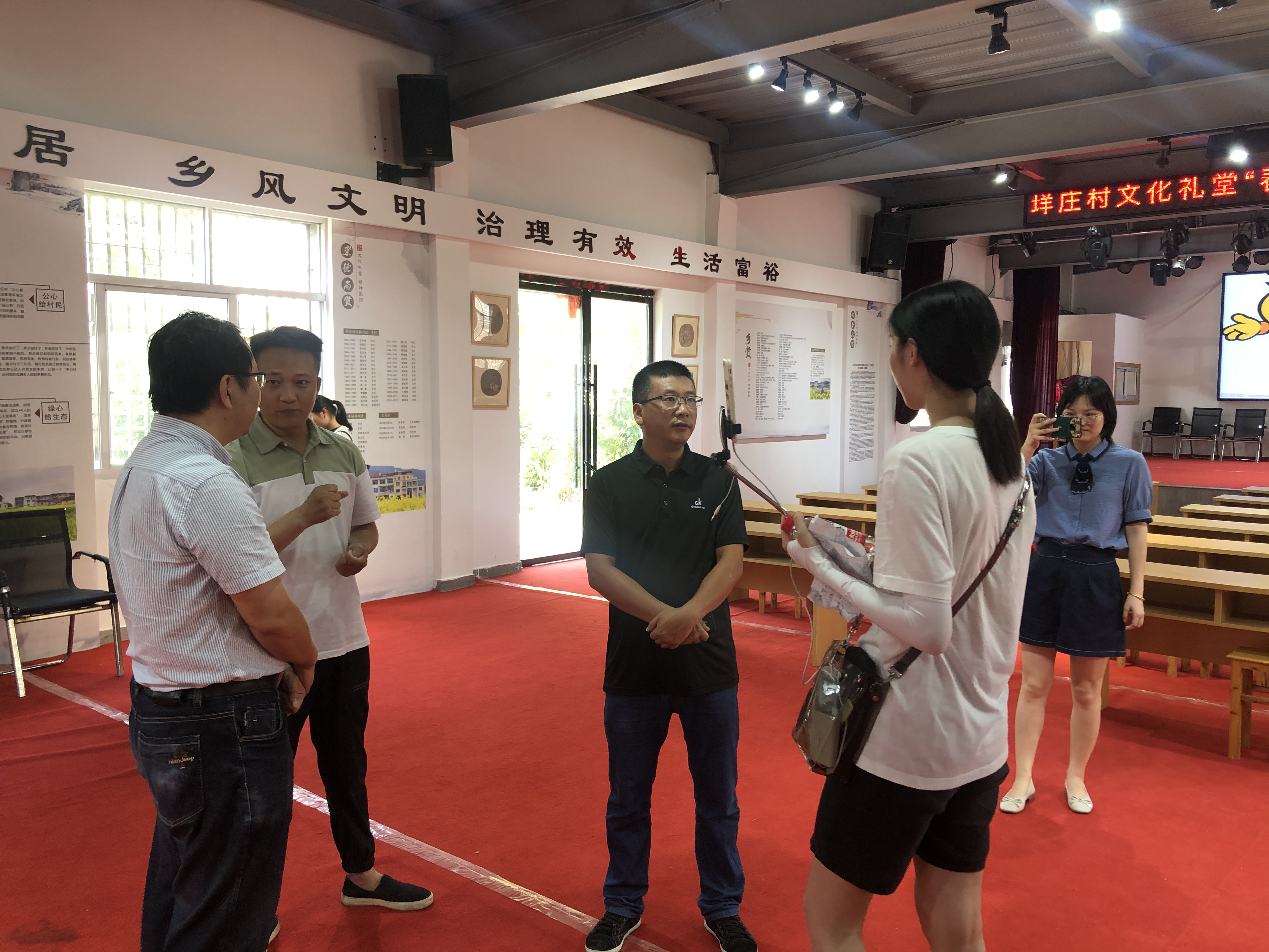 师生们到达仙居横溪镇,顾不上休息,马上组织开会讨论,与省文化和旅游厅派驻仙居县横溪镇垟庄村农村工作指导员颉顺虎了解直播村子的相关情况,查阅资料、明确直播流程、打磨脚本、细化分工。
