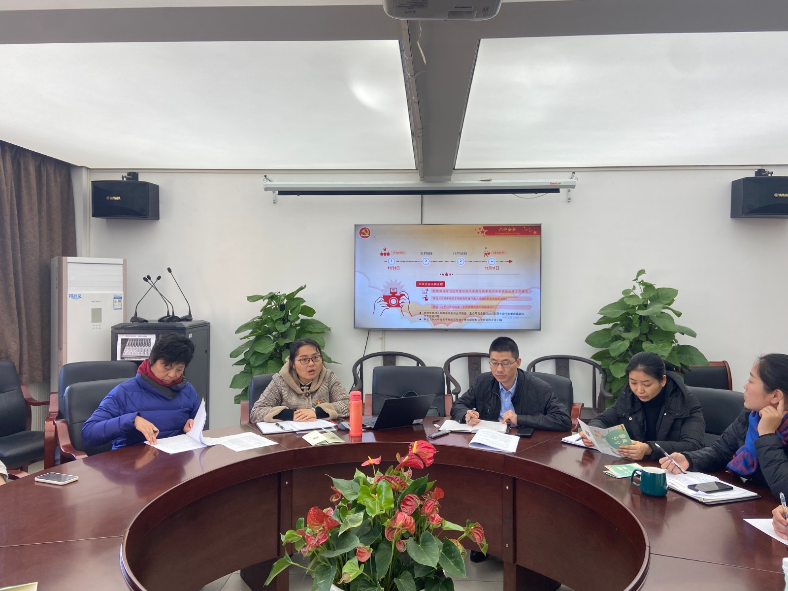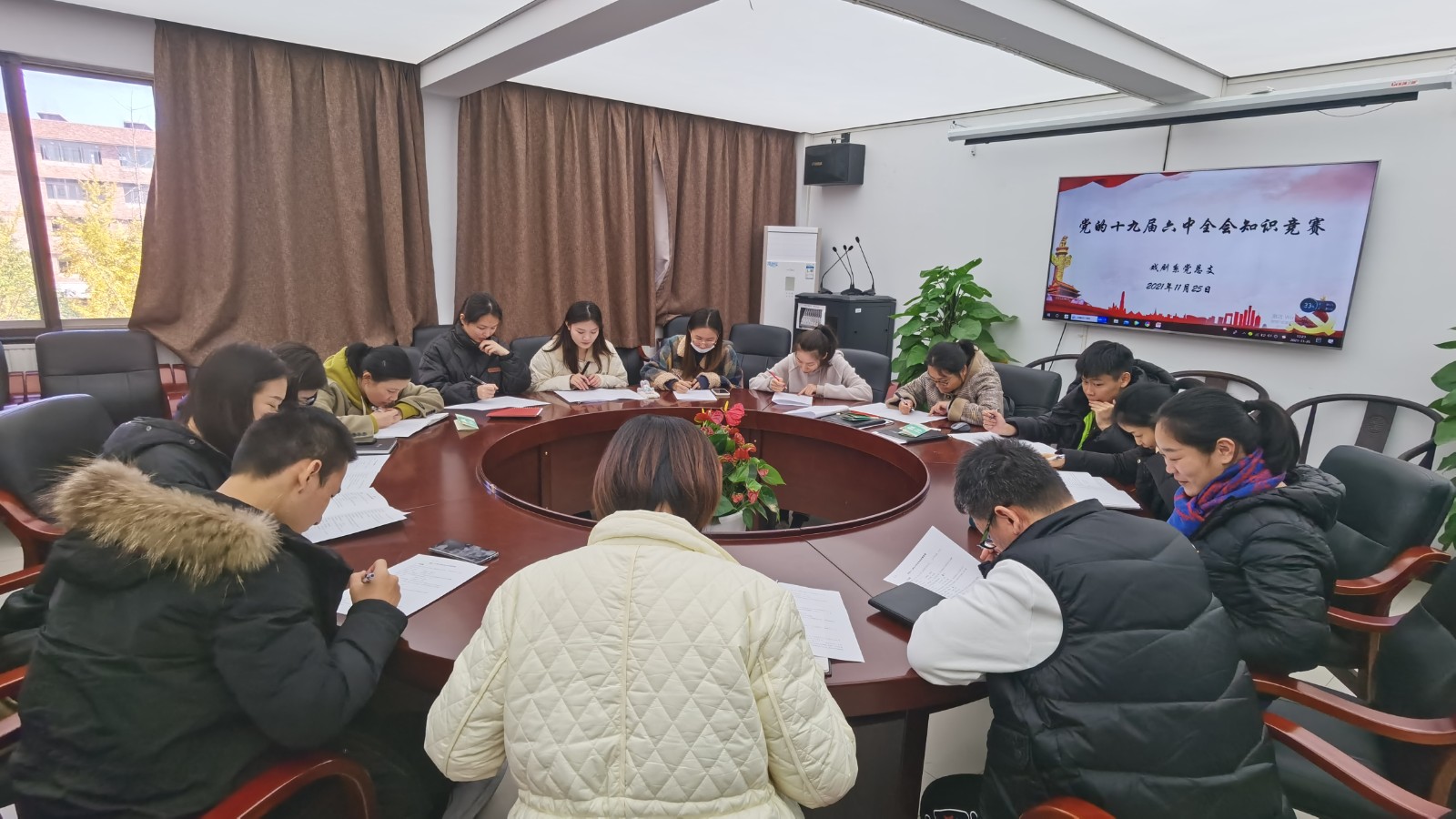 11月25日中午,戏剧系党总支召开理论中心组学习会,专题学习党的十九届六中全会精神,系领导班子、全体师生党员参会并作交流发言。