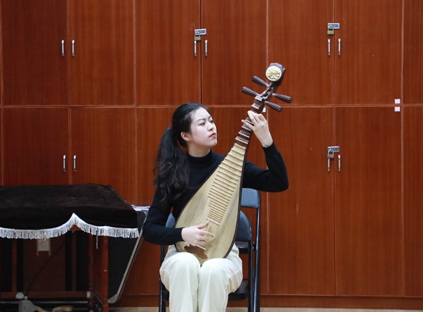 考生的演奏乐器涵盖了竹笛、主胡、二胡、扬琴、琵琶、阮、古筝、戏曲打击乐器等,考生们现场演奏了《秦土情》《枫桥夜泊》《郁轮袍》等曲目。从小学就开始学习古筝的杨同学现场演奏了《箜篌引》,她说:“从小学一年级就开始学习古筝,也很热爱越剧,对于这次考试充满了信心。”