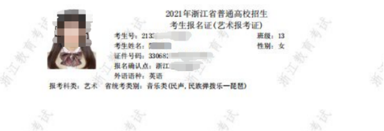 (2)《2021年浙江省普通高校招生考生报名证(艺术报考证)》复印件。