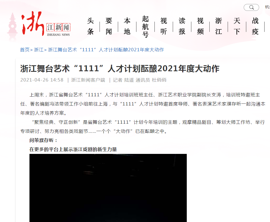 浙江新闻:浙江舞台艺术“1111”人才计划酝酿2021年度大动作