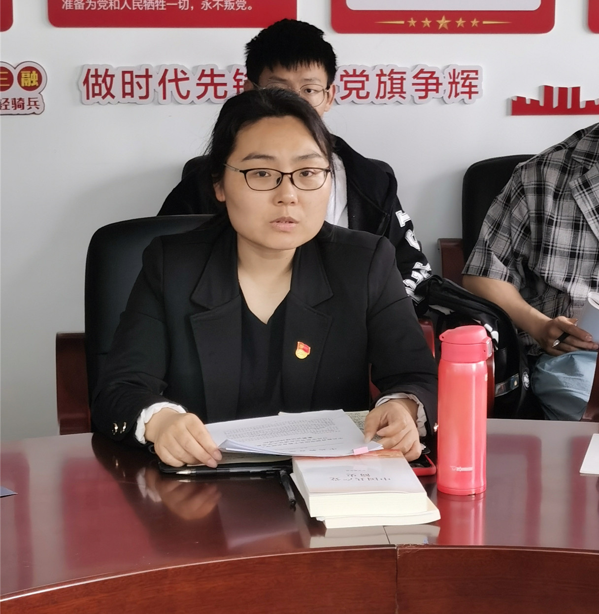 戏剧系教务员苏珊珊:作为一名青年党员,认真学习总书记的讲话内容,将严以律己,脚踏实地、自强奋进,结合工作,不断加强自己的知识水平与实践能力,为师生服务。