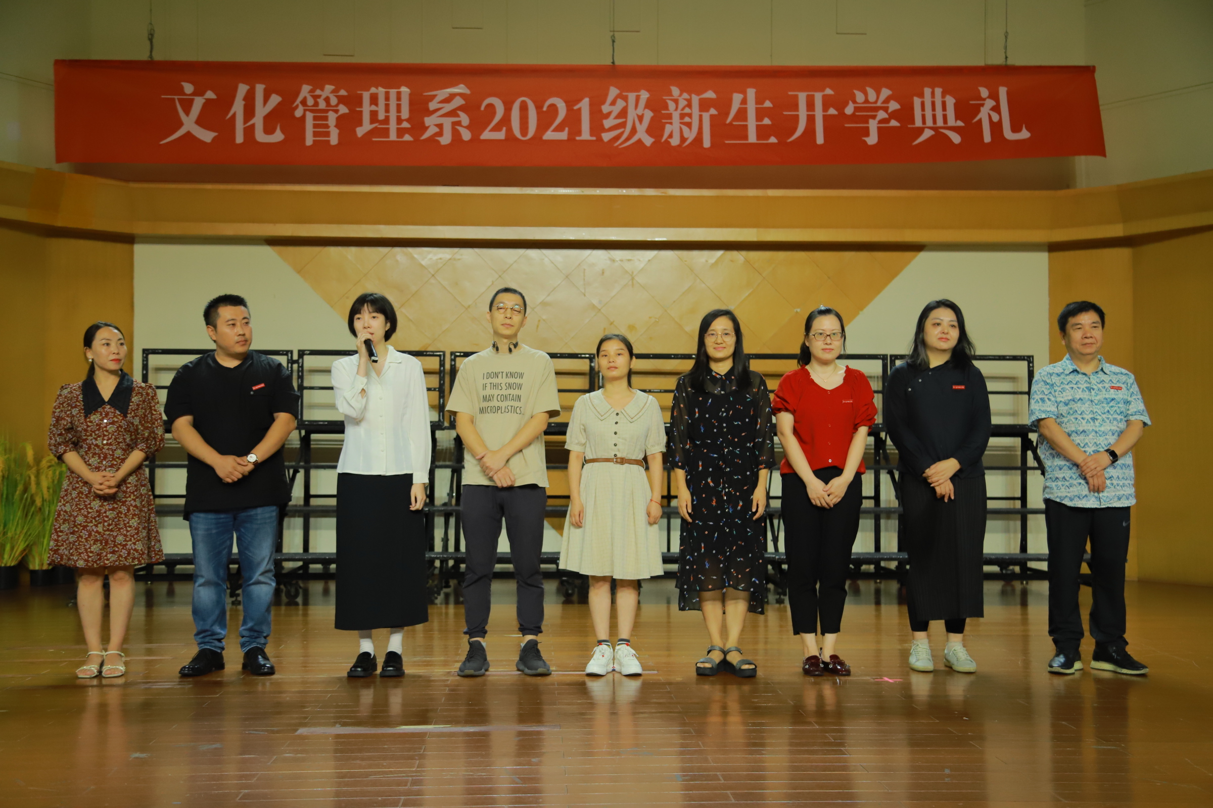 文化管理系各教研室主任和21级新生班主任也纷纷上台和新生见面,表达殷切的期盼,并祝愿同学们能在新的征程中怀揣着梦想乘风破浪,勇往直前。