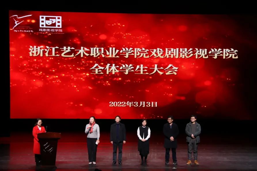 3月3日晚,戏剧影视学院全体学生大会在浙江实验艺术剧场举行。戏剧影视学院党总支书记彭云波、副院长(主持工作)那刚、常务副院长郑怡文及各教研室主任等690名师生参会。大会由学院党总支专职副书记许瑛主持。