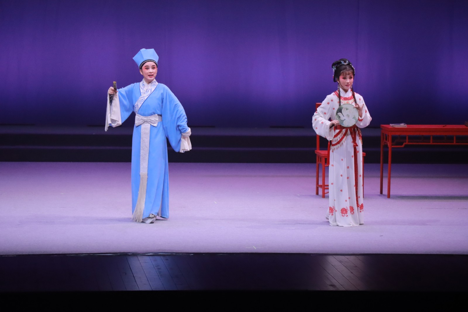 演出包括“薪火相传”“中国腔调”“经典折子戏”“告别浙艺再出发”四个篇章,学员们展示了培训期间各个阶段的学习成果,其中有声腔、身段和剧目等。越剧《梁祝·回十八》、黄梅戏《女驸马·洞房》、婺剧《碧桃花·拷打》、杭剧《白蛇传·断桥》、桐乡花鼓戏《过桥》等不同剧种的经典折子戏轮番上演,现场发出阵阵掌声。