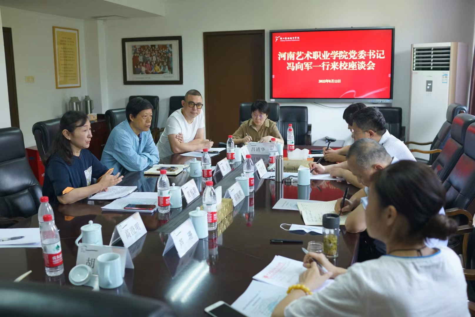 双方对应部门负责人就感兴趣的问题进行深入交流学习。会前,冯向军一行还参观了学校音乐学院、舞蹈学院、设计学院、戏剧影视学院和手工艺学院等相关实训场地。