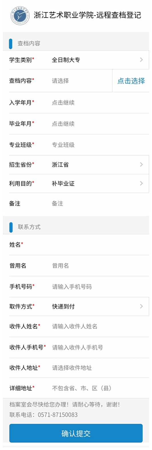 2. 进入邮箱,仔细填写查档登记信息,确认后提交。