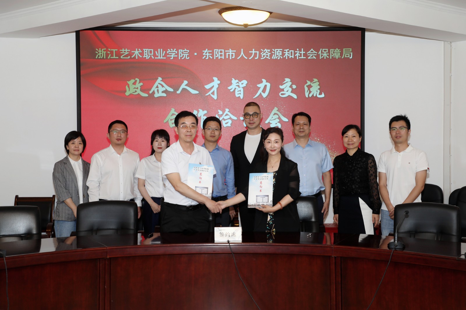 会后,学校与东阳市人力资源和社会保障局签订了《人才智力项目合作意向书》。下一步,双方将从人才培养输送、人才智力交流、教学科研成果转化、人才供需基地建立等方面加强深度交流合作,全力打造校政合作新高地,促使在更宽领域、更深层次、更高水平上实现互利共赢。