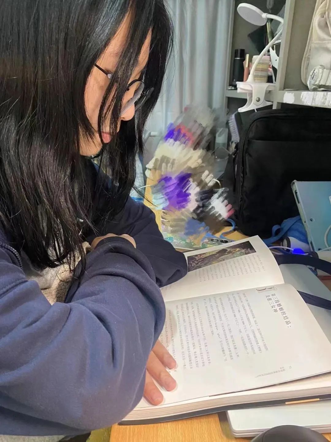 上学期成绩出来后,我们明白了自己的短板所在。每天晚上我们都会抽出时间来回顾今天所学的内容,做到相互监督相互学习,最近我们在看《中国陶瓷史》,这本书和我们专业相关,也让我们了解陶瓷的历史和艺术价值、工艺价值。
