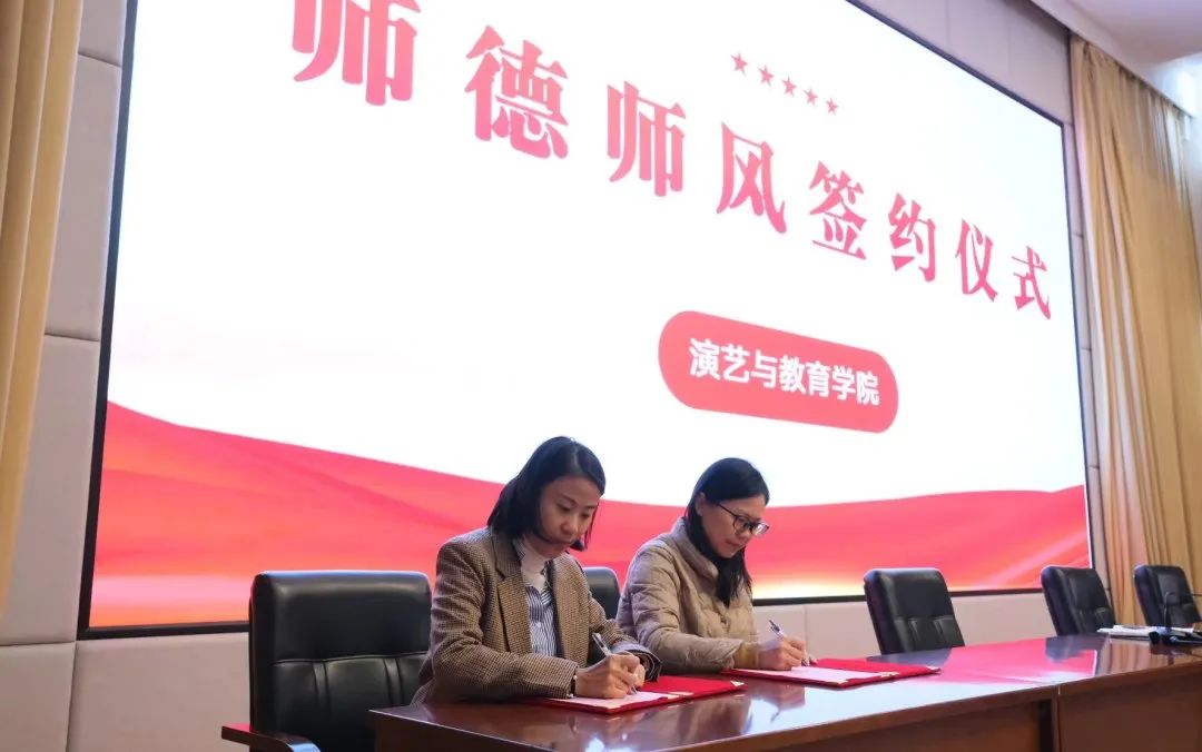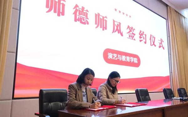演教学院党总支专职副书记钟黎代表演教学院班子与五个师德师风网格长签约了师德师风网格化管理责任书,承诺按照学院每月六个“一”要求,抓好本网格教师的师德师风管理。老师们郑重地签下名字,是对未来教学生活中一份郑重的承诺,大家将笃行奋进,坚守良好师德。