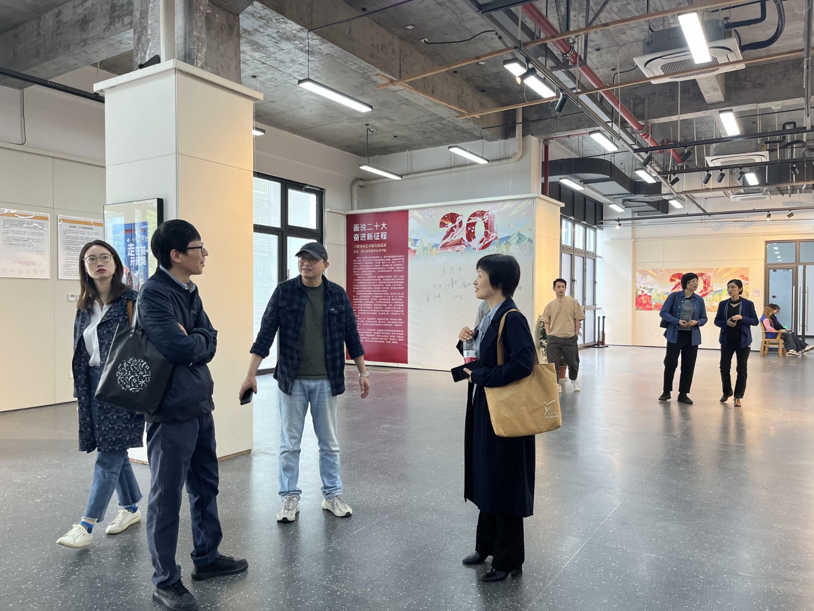 座谈结束,金银琴一行参观了浙商职艺术设计学院教学工作室,观摩了《画说二十大 奋进新征程》主题漫画艺术展。
