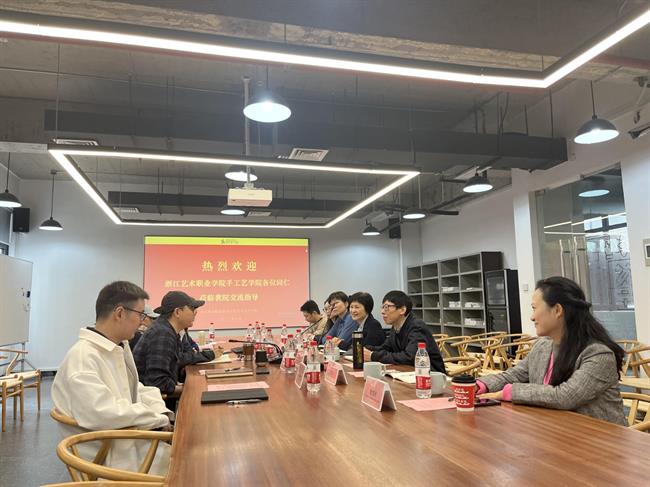 浙江商业职业技术学院艺术设计学院院长周保平,艺术设计学院副院长陈静凡、展示艺术设计专业教师等陪同考察。周保平围绕党建引领事业发展,从办学与时代接轨、政府联动、行业接轨、实践服务于乡村、中澳班办学国际化、人才培养项目化教学等方面介绍建设经验。金银琴介绍了浙艺手工艺学院的办学特色、专业设置、人才培养等基本情况,表达了本次考察调研目的,同时诚邀浙商职艺术设计学院学生参加首届“浙江好手艺”传统工艺作品展。