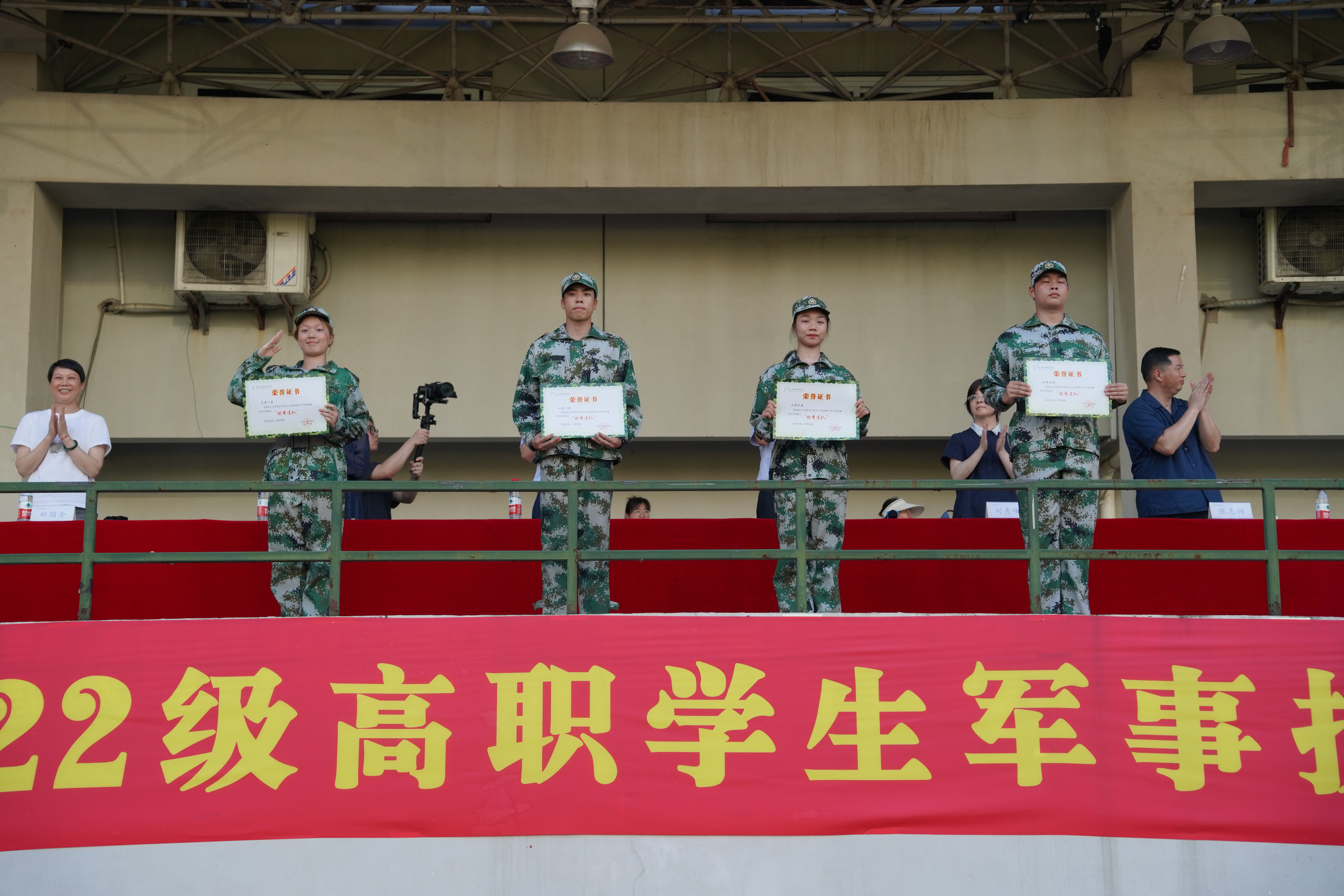 支涛、学工部副部长张志扬宣布了优秀学员、优秀连队、内务先进和会操先进名单。现场进行了表彰和颁奖。