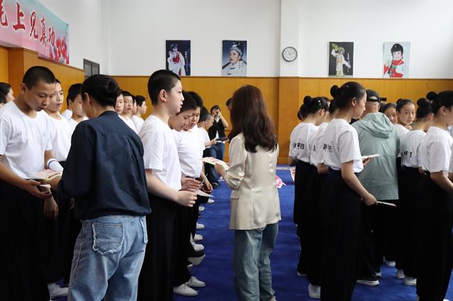 活动最后,行业嘉宾、校团领导共同为京剧班的同学们送上书记校长有约纪念卡。